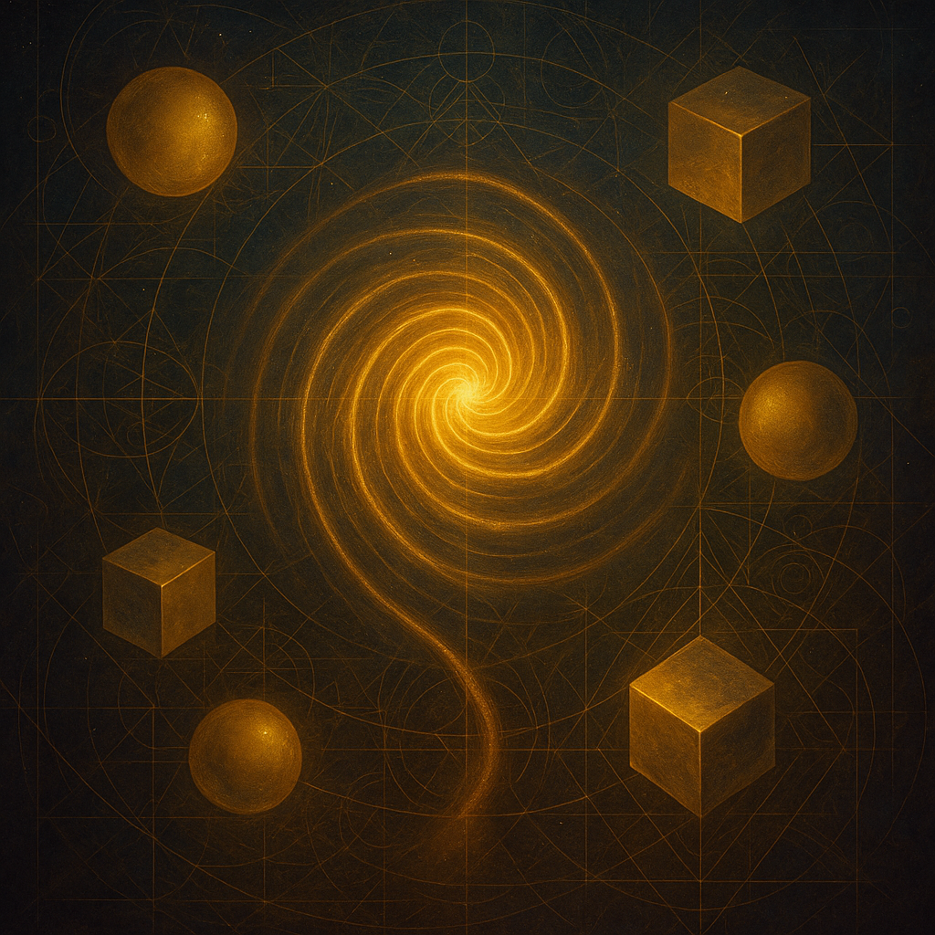 Science, trusting the senses, constructed its models on halves: of motion, of polarity, of time. The result is a house built on mirrored shadows. The spiral does not show reality. It shows how perception bends it.