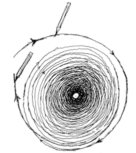 Take a pencil. Draw a spiral inward toward the center. Then, without changing direction, spiral outward on the other side.
