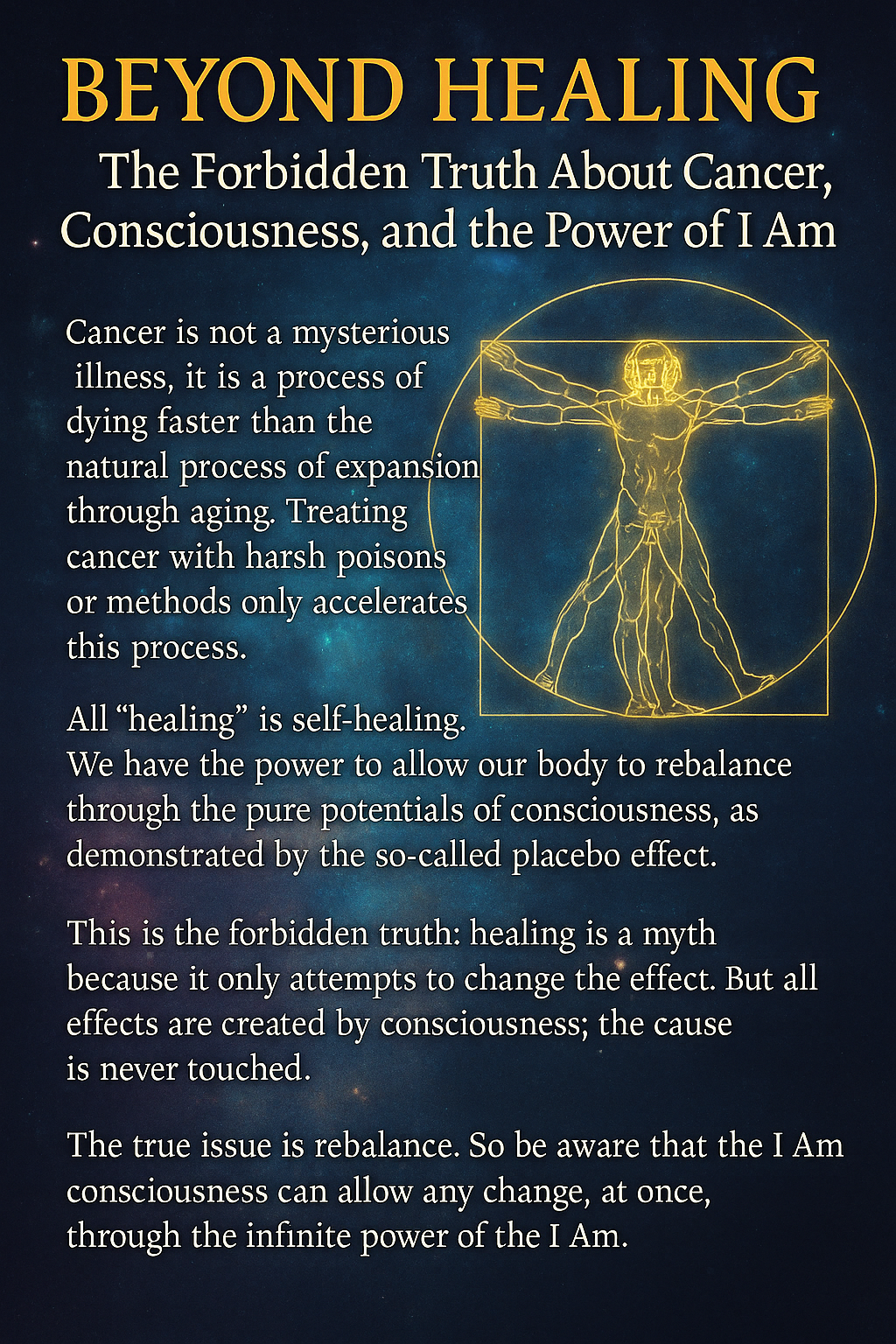 So let us speak it clearly now: Real change comes only from within. From the I Am who remembers who they are. Cancer, healing, death, rebirth — these are all stages in the great alchemy of experience. But none of them are greater than the one who observes them.
