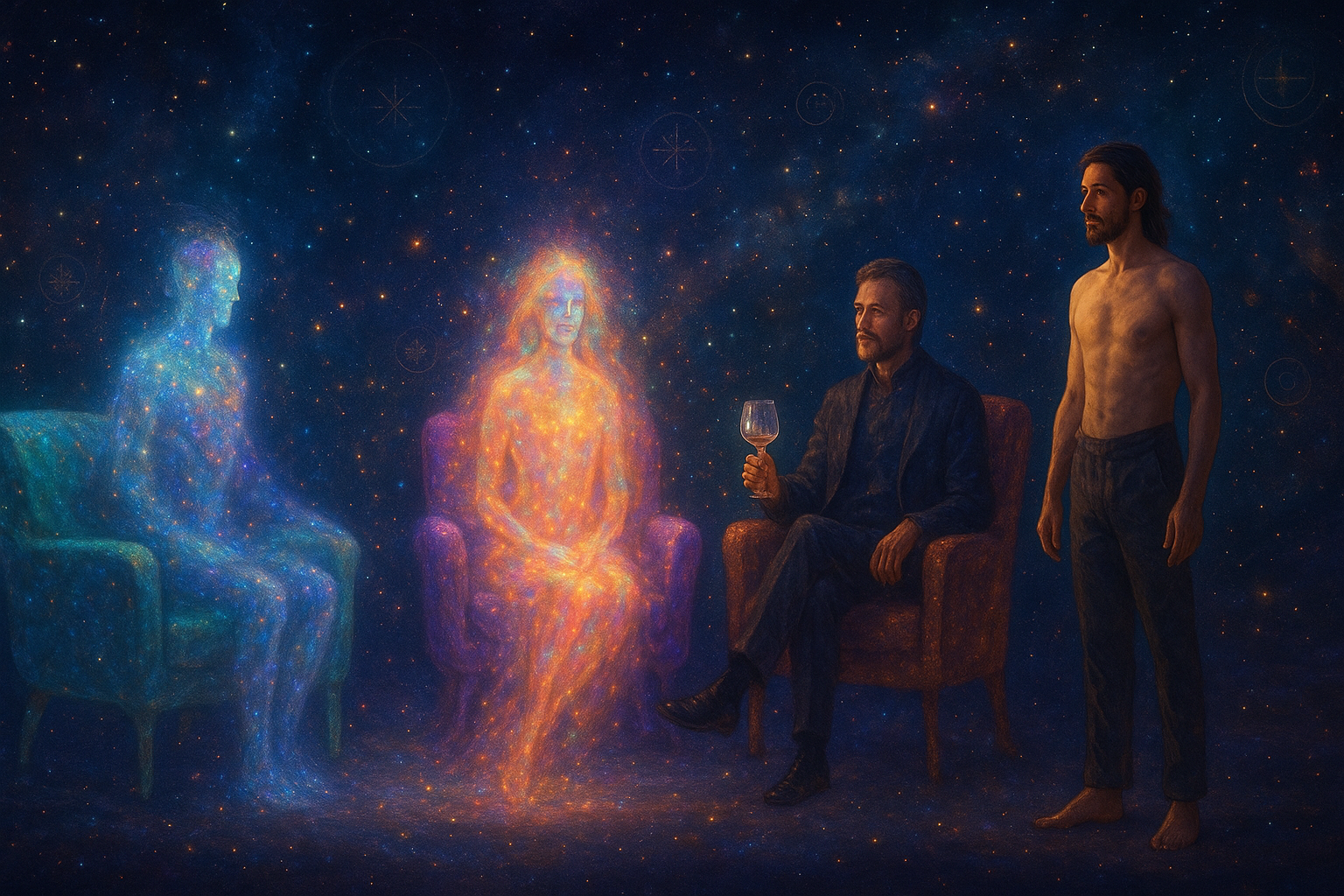 ADAMUS (levant son verre de lumière) : C’est pour ça que je suis venu. Pas pour les questions canalisées, ni les quêtes de sens — mais pour la Présence en chair. Laki du Domaine Souverain. Bienvenue au seul vrai jeu.
