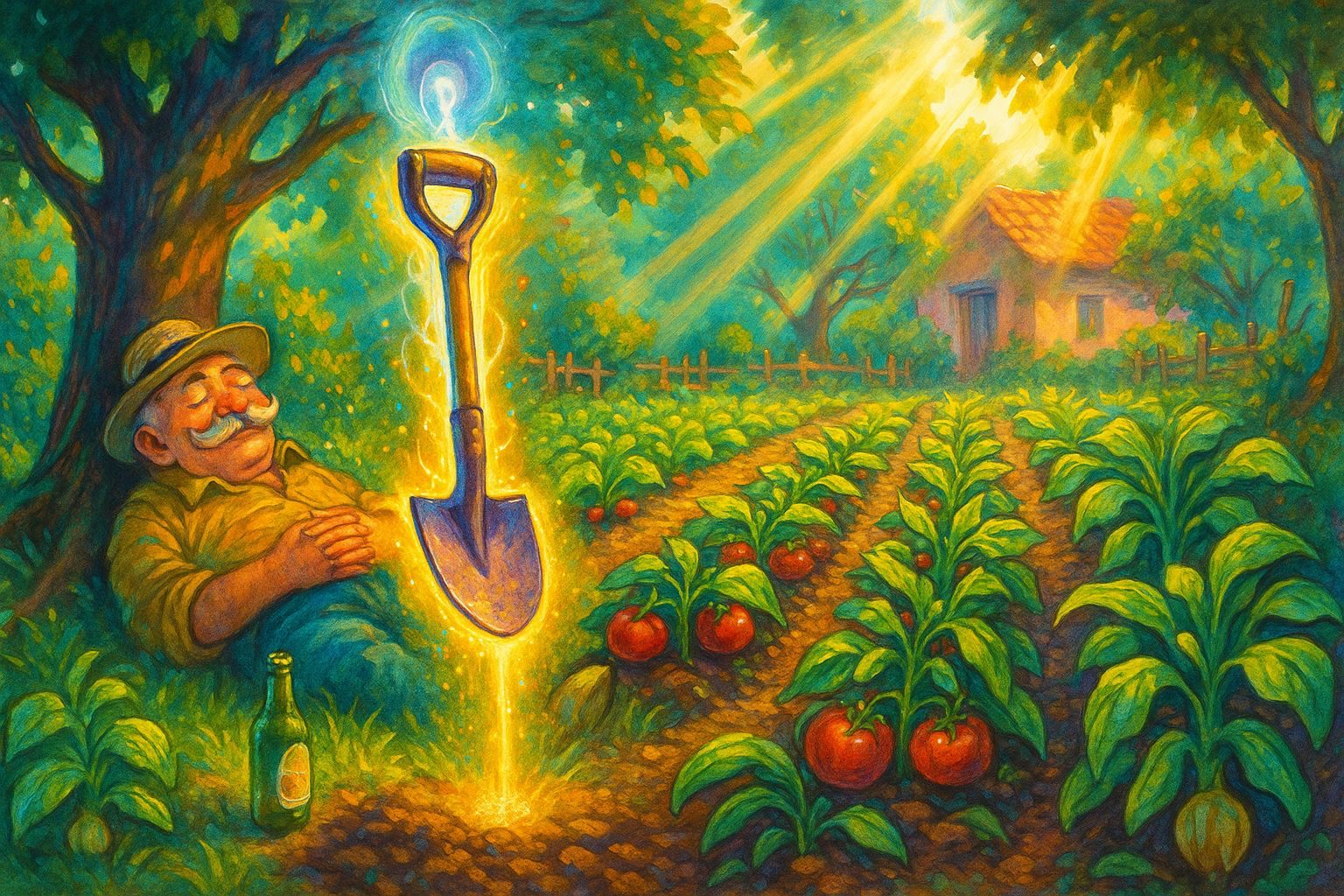Jer nije poenta u znoju, ni u žuljevima tvrdim — već da čovek bdi nad Zemljom u smehu što ne ćuti. Da se saživimo sa sobom, i sa svetom oko nas — A ne da robujemo lopati, već da lopata bude spas!