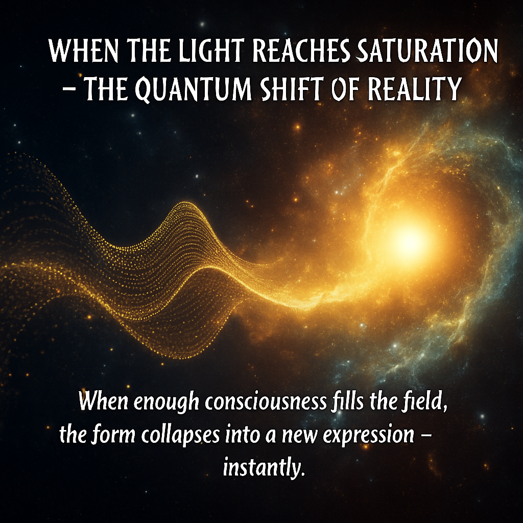 And just like a wave collapses into a particle, reality shifts when enough consciousness fills the field. The moment light reaches saturation, the form collapses into a new expression — instantly.